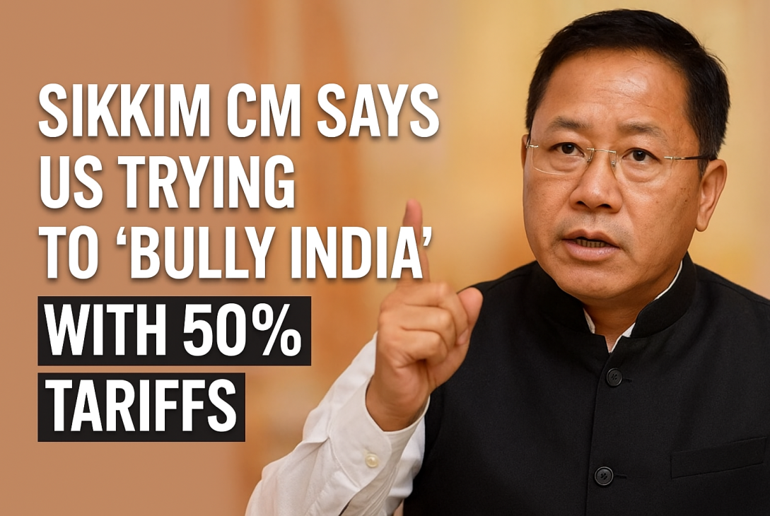 Sikkim Chief Minister Prem Singh Tamang on Friday accused the United States of trying to “bully India” by imposing 50% tariffs on Indian imports. He urged citizens to follow Prime Minister Narendra Modi’s ‘Vocal for Local’ campaign to strengthen the domestic economy.